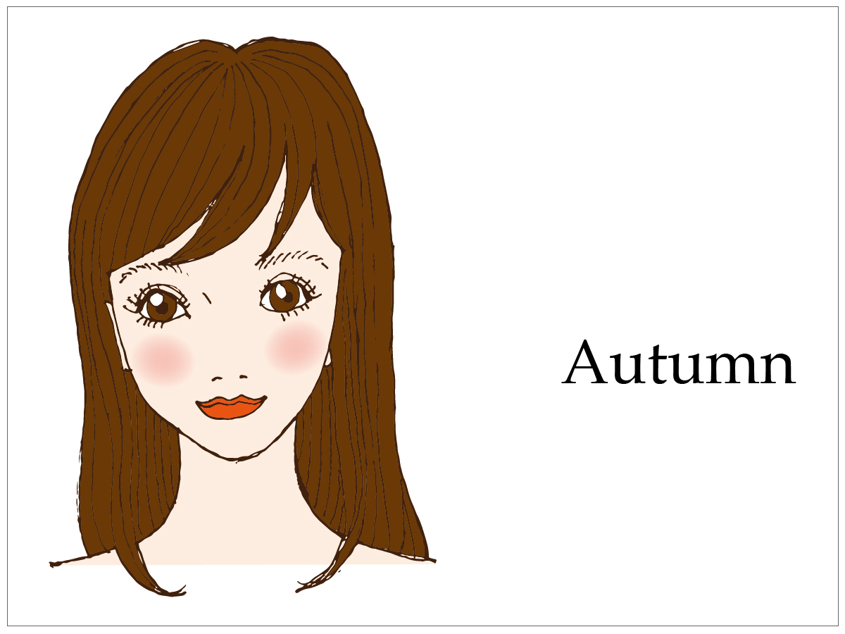 ナチュラルで落ち着いた印象の秋タイプ。標準的な肌色の方が多いのが特徴です。大人っぽく、あまり鮮やか過ぎない深みのある色が得意です。