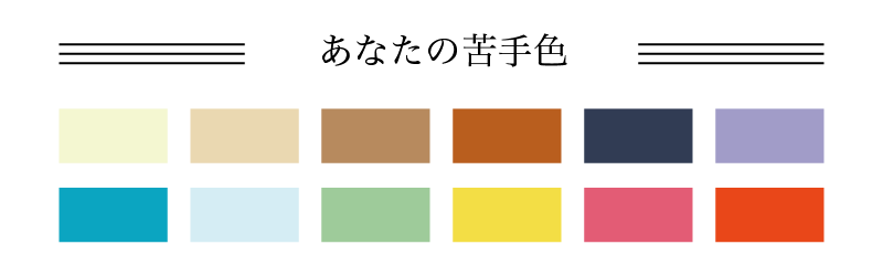 高明度の明るい春タイプの色が苦手です。苦手色を顔まわりに持ってくると、顔色が悪く見えたりくすんで見えるので注意しましょう。