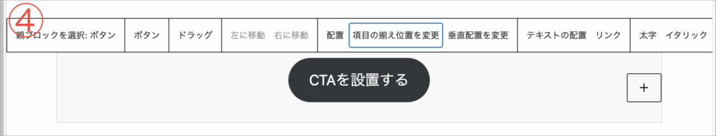 CTAに表示する文言を「CTAを設置する」などに変更し、必要に応じてリンク先を設定します。