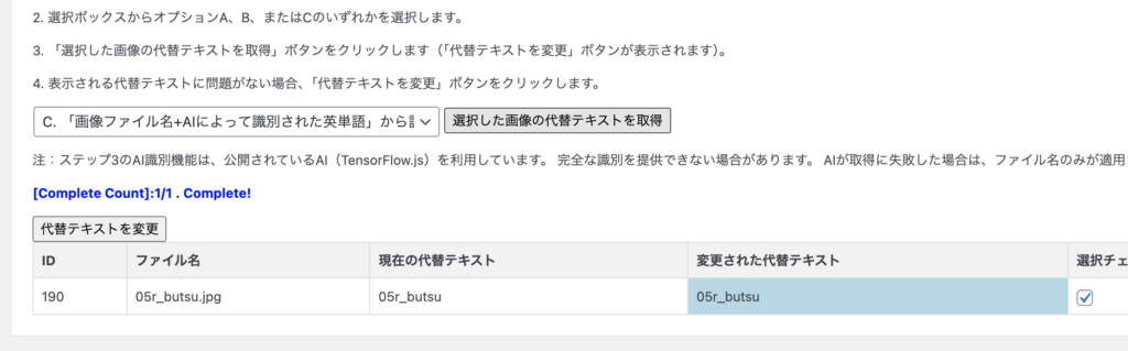 ②画面の指示に従って「代替テキストを取得」を押すと、キャプションが生成されます。